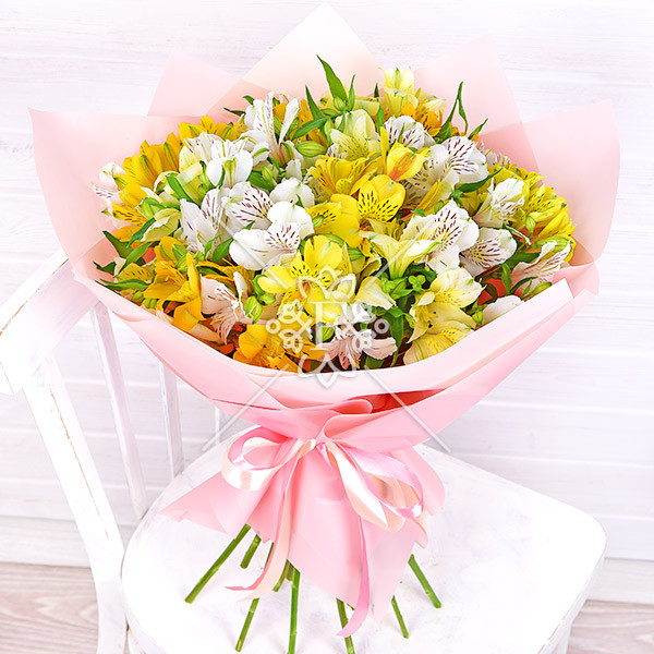 Загадай желание – букет из желтых и белых альстромерий